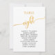 These elegant gold table number 8 seating chart cards are perfect for a simple wedding. The neutral design features a minimalist card decorated with romantic and whimsical faux gold foil typography. The card prints on the front and back (double-sided).