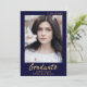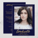 Elegant Gold Text Dark Blue Graduate Photo Announcement
