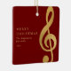 This simple and elegant musical Christmas ornament features a gold treble clef on a red burgundy background. Perfect for music ensembles, choirs, teachers, and music lovers. Personalize it with your own custom text.