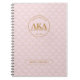 Stay organised in style with this custom business notebook, featuring a luxurious gold trellis pattern on a soft pink backdrop. The dotted medallion emblem highlights a bold three-letter gold monogram, while the customisable title and volume number make it perfect for business journals, meeting notes, client records, or planners. Personalise it with your business type, tagline, and website to create a sophisticated branding piece for executives, entrepreneurs, beauty salons, and boutique owners. Elevate your workspace with this stylish, professional notebook!