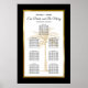 Add your own special touch to this elegant design featuring modern script and black text including an artistic gold palm tree silhouette with a metallic gold frame. This seating chart design features the bride and groom's names along with the words "Eat, Drink, and Be Merry" and "Please Find Your Seat". Templates are provided for up to seven tables with up to 8 or 9 names per table.