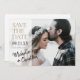 Simply Chic. This stylish, modern wedding save the date flat card template has a bright, clean and fresh design featuring a semi-transparent overlay for your text on the left portion of your photo, lending a feeling of flow. To add to that effect, depending on the length of your first names, one or both might 'overflow' onto the photo as in this example! So you can experiment with which name you put first and see how each version looks. On the front, we've highlighted the SAVE THE DATE with an elegant gold tone called California Gold, and the other front text is black, but you can change this to suit your style. On back, you can also edit the text according to your needs. You might want to delete a text field that you don't need, or change the colour or font of some text. We've chosen a grey tone for the text on back, and we've set the background colour as transparent, so that the colour of the paper serves as the base colour, for a simple, clean look. You can change this and choose a colour for the base if you prefer. Use the intuitive design tools, your favourite photo and your inspiration to customise this elegant save the date flat card and make it uniquely yours. And please browse our shop for this design in postcard and magnet card formats, along with a selection of other stylish modern save the date invites!