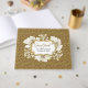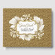 Elegant gold tone wedding guest book done in a golden circle pattern. A golden glitter framed white text area is decorated with ivory coloured flowers around the outside. Gold tone graphic script text reads Guest Book. Personalise the black custom text for your special day.
