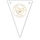 Simple, elegant, minimal, modern white wedding bunting flags, with monogram and gold rope heart.