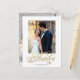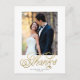 Beautiful card with Thanks in a script font with swirls. Faux Gold Wedding Photo Thank You Postcard . Customise with your photographs and text. Use the template prompts or click customise it and have more freedom to personalise your card. Sample photo only. Elke Clarke ©