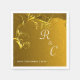 A gorgeous golden wedding reception paper napkin which can be personalised with the bride and groom's monograms and date of the wedding. The design features a beautiful vintage-inspired damask scrolling edge, with a faux-embossed look in the centre. This stylish gold wedding serviette is part of a larger wedding set, including matching invitation, save the date, wedding menu and more, which you can see in full here: https://www.zazzle.com/collections/elegant_golden_wedding-119011321871117695
