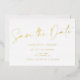 Modern elegant real gold foil script on white wedding save the date with a casual and cool script calligraphy,add your photo at the back