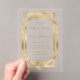 This elegant vintage-inspired wedding invitation features gold-coloured text on a clear transparent background, framed by a geometric vintage art deco design.