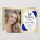 Elegant Gold White Royal Blue Photo 50th Birthday Invitation