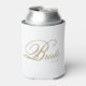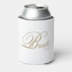 Bride can cooler. Elegant gold script Bride on a white background with wedding date in classic block text at bottom right. The wedding date can be removed by clearing the text field, or personalised with bride name or bride and groom initials.