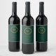 Elegant Gold Wreath Emerald Green Monogram Wine Label