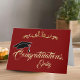 Elegant Golden Congratulations Graduate Graduation Card. Dark red graduation card with graduation cap, modern golden script and golden ornament. Congratulations and a name of the graduate on the front side - personalise with your name. Personalise the text inside the card or erase it.