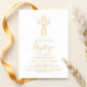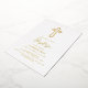 Celebrate a special Baptism with this elegant invitation featuring a chic golden cross and modern typography. The design combines simplicity with sophistication, showcasing a refined cross against a soft background, ideal for a timeless and memorable event. Perfect for both traditional and modern Baptism ceremonies, this invitation sets a welcoming and graceful tone.