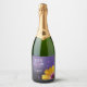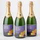 Elegant Golden Daisy with Purple Glitter Wedding Sparkling Wine Label