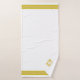 Elegant Golden Flower, Monogram & Stripe on White Bath Towel Set