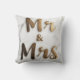 Elegant Golden Glitter "Mr & Mrs" on a Marble Back Cushion
