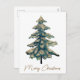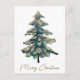 Elegant Golden Green Merry Christmas Tree Holiday Postcard