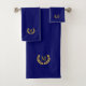 Elegant Golden Laurel & Monogram on Navy Blue Bath Towel Set