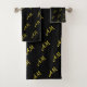 Elegant Golden Monogram on Black Bath Towel Set