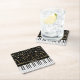 An elegant stylish design for the piano player or musician featuring golden coloured musical notes and a piano keyboard on a black background with gold and black strip to add the name of your choice to create a unique personalised music themed gift for any occasion