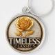 Elegant Golden Rose With Timeless Classics Text Key Ring