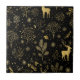 Luxurious gold winter forest pattern ceramic tile featuring deer, trees, and snowflakes on a black background. This festive and elegant design captures a warm holiday and Christmas aesthetic, perfect for winter lovers, modern minimalists, and seasonal themes. Ideal for holiday art, cozy decor, and nature-inspired creatives.