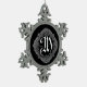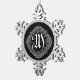 Elegant, ornate,vintage goth design in shades of grey with a monogram initial. Makes a great gift.