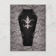 A post card with an elegant black gothic coffin with a grungy damask background pattern on it. Write your Halloween greeting on the back.