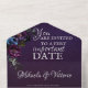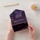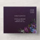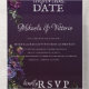 This design features dark purple anemones, dark blue and light purple ranunculus on a dark purple background with a slight gradient. The font is in a delicate, almost white shade of grey that contrasts with the dark background. The card is specifically for the area in Gothic, which stands for elegance and extravagance. It's perfect for couples looking for an unconventional and unique wedding invitation. Very easy to personalise by clicking on the personalise button.