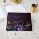 This design features dark purple anemones, dark blue and light purple ranunculus on a dark purple background with a slight gradient. The font is in real silver foil that contrasts with the dark background. The guest book is specifically for the area in Gothic, which stands for elegance and extravagance. It's perfect for couples looking for an unconventional and unique wedding. Very easy to personalise by clicking on the personalise button.