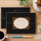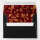 Elevate your correspondence with this exquisite gothic dark academia black and gold return address envelope. The front features an intricate gold baroque frame highlighting the main address area against a striking black background. The reverse side boasts a vintage-style gold return address with a customizable monogram within a heraldic shield for a touch of vintage gothic elegance. Open the envelope to reveal a luxurious lining featuring a watercolor pattern simulating red velvet with gold baroque motifs. This unique design is perfect for wedding invitations, special event announcements, holiday party invites or any occasion where you want to make a lasting impression. Easily personalize the template fields with your own details to create a truly bespoke product.