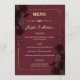 Elevate your reception with this gothic romance wedding menu, featuring a rich burgundy background, elegant typography, and dramatic rose accents. Designed to complement dark romantic and gothic wedding themes, this menu adds a luxurious and moody touch to your table setting.