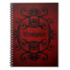 A gorgeously romantic dark red and black damask motif in black on a dark red background and the word "Vampire". Shown here on a spiral bound notebook.