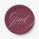 Elegant Grad Calligraphy Script Maroon Graduation Paper Plate