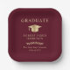 Elegant Grad Cap Burgundy Gold Graduation Party Paper Plate