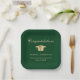 Elegant Grad Cap Green Gold Graduation Party Paper Plate