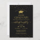 Elegant Graduate Gold Glitter Confetti Cap Black Invitation