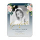 Elegant girly watercolor floral graduation announcement magnet featuring pink peony roses bouquets with foliage and leaves, and a faux gold chic calligraphy script over a dark navy blue (changeable colour) background.+++++++++ Easy to personalise with your photo, graduate's name, school, and year.