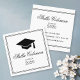 Modern graduation name card with black hat and the graduate name highlighted with an elegant calligraphy script font.