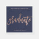 These modern, elegant graduation napkins feature trendy faux rose gold typography on a navy blue background.