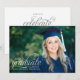 Celebrate your graduate with this elegant graduation party invitation featuring a full senior portrait with white calligraphy "graduate" script and class year on the front. The back showcases a beautiful flourished "celebrate" script headline with all party details in a refined mix of calligraphy and serif typography on a clean cream background. Fully customisable text on both sides makes personalising effortless.