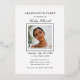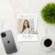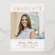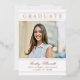 Announce your graduate in style with this striking real foil photo graduation announcement card / party invitation that features an elegant two sided design with two senior photos of your beautiful grad. Trendy rose gold foil with classic black and white colour scheme. The back of cards includes an invitation to a graduation party to celebrate the occasion.