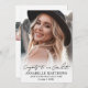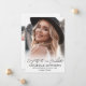 The back includes a three-photo collage or photo strip, along with space for a personal message celebrating the graduate’s achievements and future plans. The all-white background paired with black typography keeps the design modern, versatile, and sophisticated.