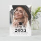 A simple and elegant boho-inspired graduation announcement with a clean, timeless look. The front features a full-page photo with a soft white gradient at the bottom for a polished finish. “Class Of 2026” (or any year) is displayed in a stylish mix of flowing script and classic serif fonts, with a small graduation cap detail placed above for a subtle celebratory touch. Below, the graduate’s name and school appear in clean black typography for a refined, easy-to-read layout.