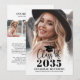 The back includes a three-photo collage or photo strip, along with space for a personal message highlighting the graduate’s achievements and future plans. The all-white background paired with black fonts keeps the design modern, versatile, and sophisticated. Fully customizable to match your style or school colors.