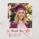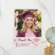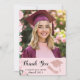 Elegant Graduates Photo Floral Pink Graduation Thank You Card