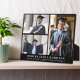 Elegant graduation keepsake black photo plaque to celebrate your graduate featuring a three picture collage and his or her name, class year and school in elegant modern white typography.