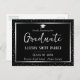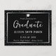 Classic Elegant mortar graduation hat graphic with modern script font graduation announcement postcard. Black and silver design.