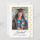 A graduation announcement with a minimalist, yet elegant, style. Ivy has long been associated with education. So, the gold ivy image and the beveled gold frame for the photo really sets this design apart. All text can be easily changed by using the template. Selecting “Personalize this design” offers you several edit options to easily change the text (wording, plus type font, color, size, position) and to edit the design elements. You may also want to scroll down to the section “Transfer design to a product” for a few suggestions about other items this design can be used on. Comes complete with envelopes. Although the text on the back indicates this card is for a High School graduate, it can easily be changed and adapted as needed.