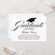 © Socialite Designs. Our elegant script / calligraphy "graduate" text and graduation cap, with black text on white background, add a touch of simple elegance to this graduation invitation. Easily replace our template text for your special event.